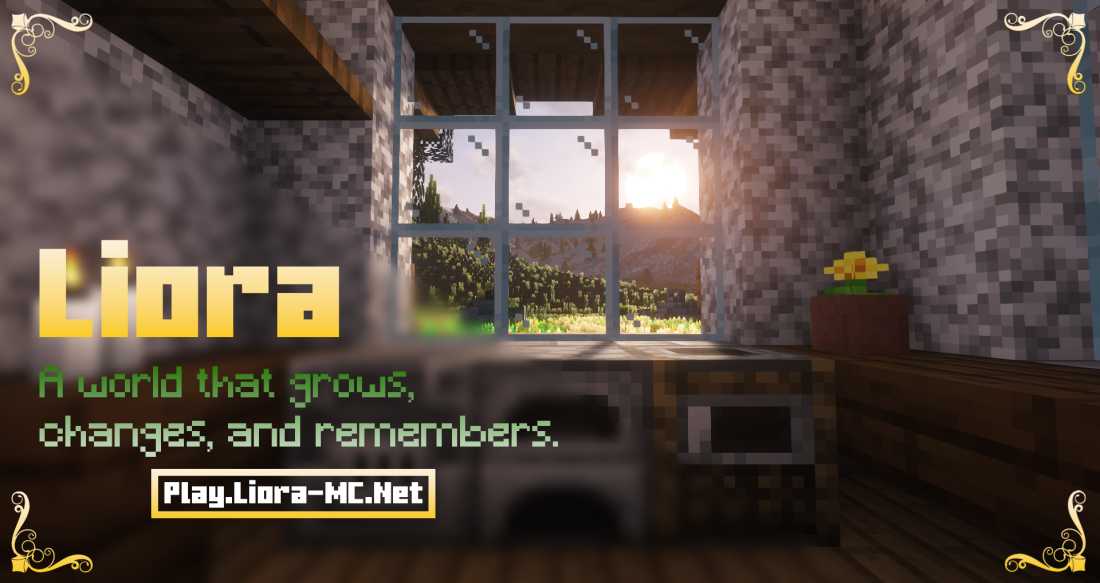 Community First Builders, traders, explorers, diplomats, and fighters all shape the world together. Liora is long-form and player-driven. The server evolves through participation.